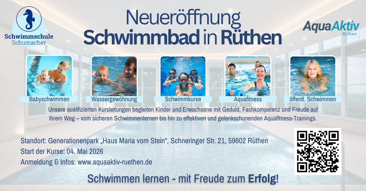 Schwimmkurse für Kinder sowie Aquafitness im AquaAktiv Rüthen im Generationenpark.